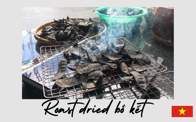 Faites griller les gousses de bồ kết séchées jusqu’à ce qu’elles dégagent un parfum agréable